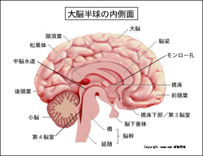 また以前から右脳、左脳というのが時々話題になりますが、基本的には人間では左側の脳が言語の優位半球となり、計算や数値的なことを主に担当し、右側の脳は画像等の情報を処理するといわれています。ただし10〜20%の人では言語の中枢が右側や両側にあると言われています。左右の脳は脳梁という太い神経の束で結ばれています(図5)。
