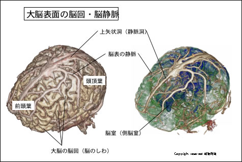 図6に脳のしわ(脳回といいます)、動脈や静脈の分布を示しますが、おおよそ一定のパターンはありますが、細かいところに注目すると個々人でかなりの相違があるのも事実です。