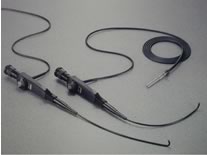 神経内視鏡手術で用いられる内視鏡は大きく2種類に分けられます。一つは硬性鏡と呼ばれる金属の鏡筒を持つもので(図1)、もう一つは軟性鏡といい内視鏡の本体が樹脂でできているため可動性を有するものです。胃カメラと同じ構造です。多くは内部にグラスファイバーを内蔵するのでファイバースコープとも呼ばれています(図2)。