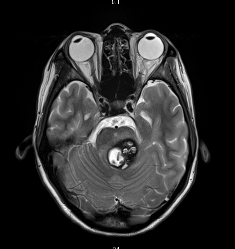海綿状血管腫は、血管奇形の一つです。最近は脳ドックで見つかることが多い病気で、ほとんどの場合は無症状です。無症状の海綿状血管腫は、長期的に安定しており経過観察が基本的な治療方針です。しかし出血や、海綿状血管腫そのものにより脳が圧迫され神経症状が出現した場合や、てんかんの原因になった場合には手術による切除を考慮します。多発性、家族性のものもあります。多くは大脳にできますが、脳幹部にできる海綿状血管腫は出血しやすいことが知られています。脳幹部海綿状血管腫の出血では眼球運動障害や手足や顔面の麻痺、感覚障害や顔面神経麻痺など重篤な症状をきたすことがあります。しかし、手術も大きなリスクを伴うため、十分に検討する必要があります。
