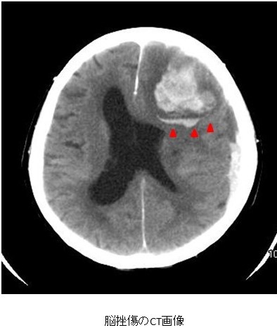 脳挫傷の診断はCTやMRIなどの画像検査で行います。挫傷した部分の脳は壊死や出血、浮腫が混在しています。CTでみると、正常の脳よりもやや黒っぽくなった部分(=浮腫や壊死)のなかに点状の白い部分(=出血)がモザイク状に散在して見えます。脳挫傷の症状は、頭痛や軽度の意識障害のようなものから、麻痺、言語障害、失語症、意識障害などの重篤なものまで、損傷の部位と大きさにより様々です。脳挫傷に伴う進行性の出血や脳浮腫が増大することで症状が悪化することがあります。
